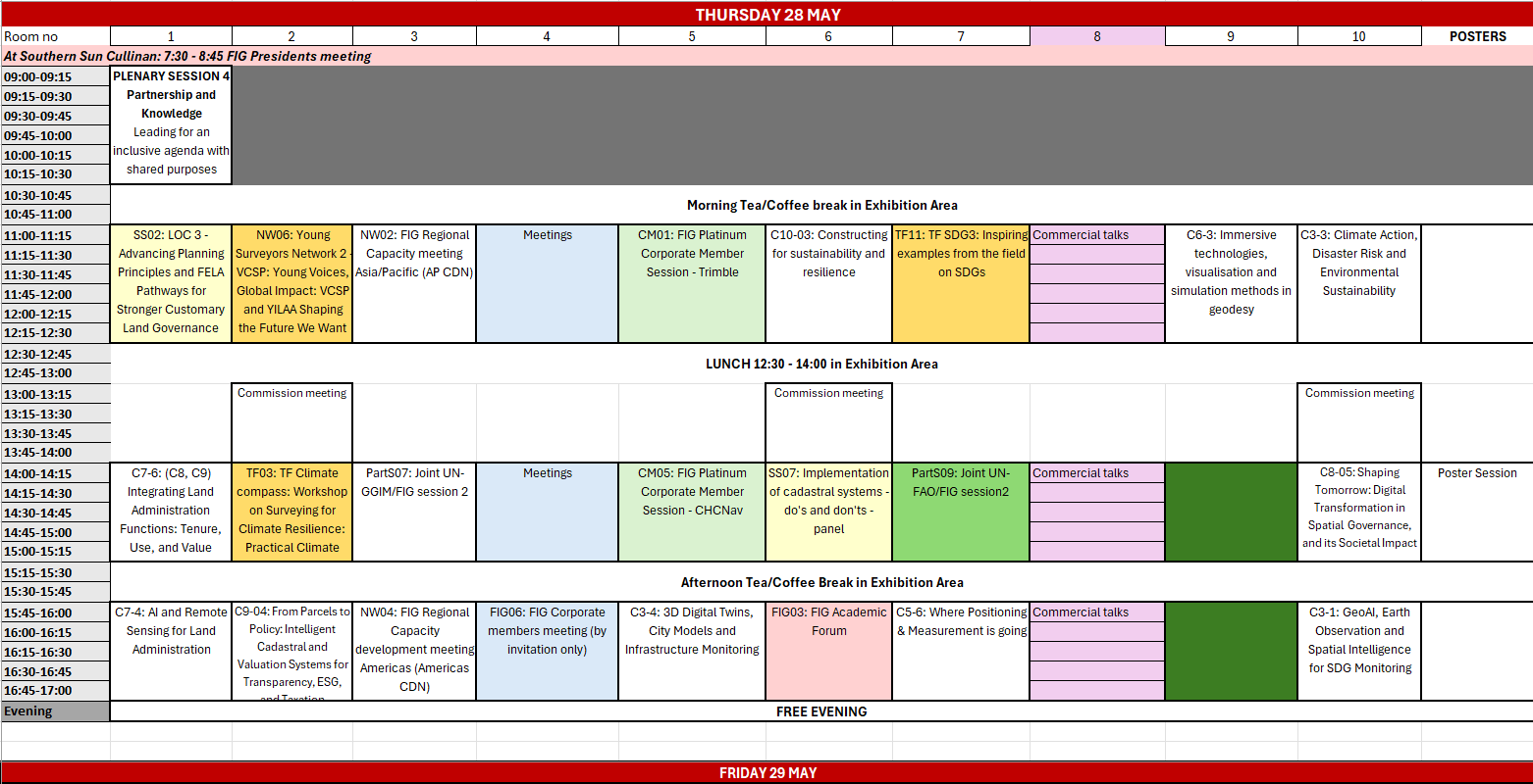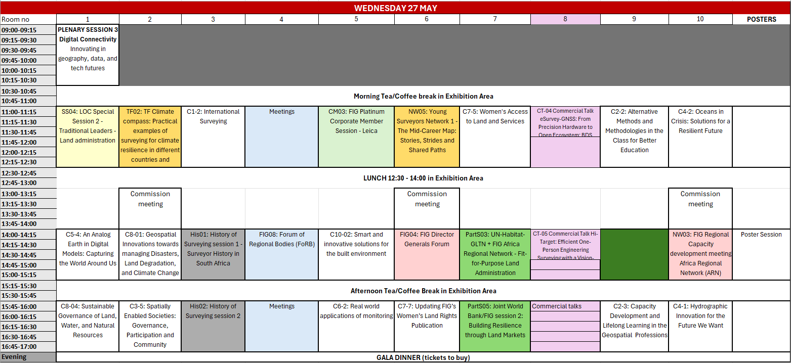 | Evenings | Welcome Reception | FIG Commission Dinners | Gala Dinner | |||||